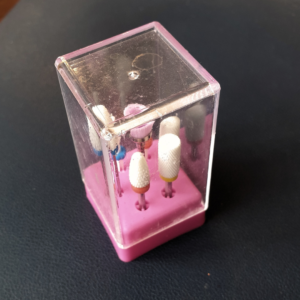 - A tiny football shape diamond drill bit. Great for detailed work around the zone 3 area or underneath the free edge